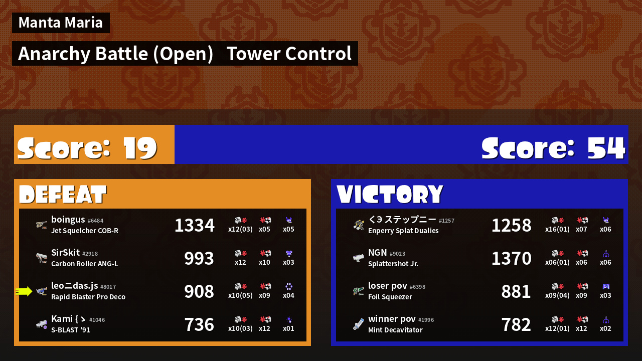 | Mode | Tower Control - Anarchy Battle (Open) | ||