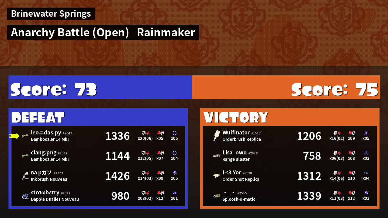 | Mode | Rainmaker - Anarchy Battle (Open) | ||