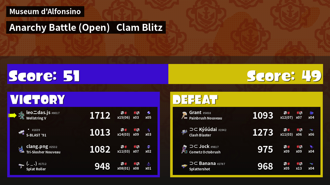 | Mode | Clam Blitz - Anarchy Battle (Open) | ||