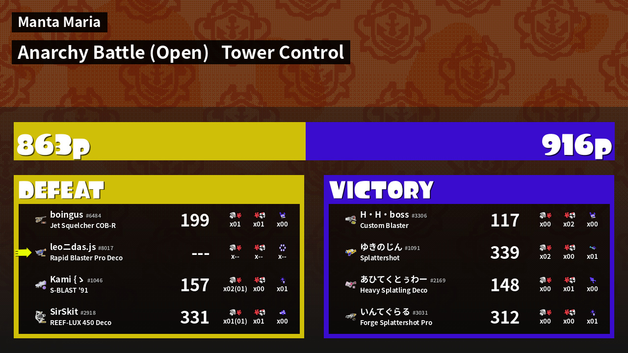| Mode | Tower Control - Anarchy Battle (Open) | ||
