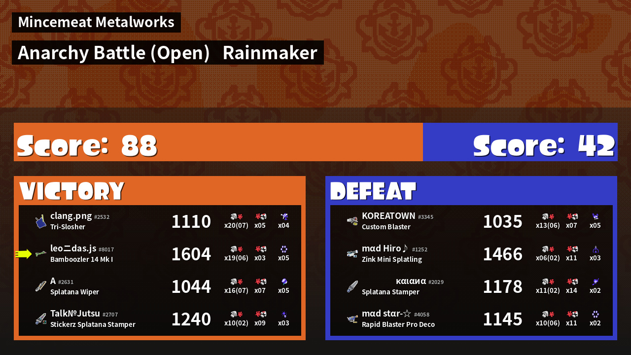 | Mode | Rainmaker - Anarchy Battle (Open) | ||