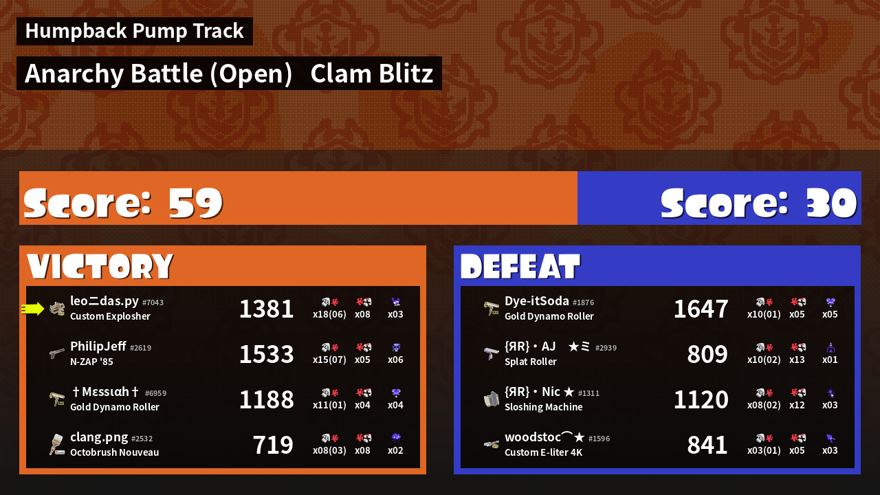 | Mode | Clam Blitz - Anarchy Battle (Open) | ||