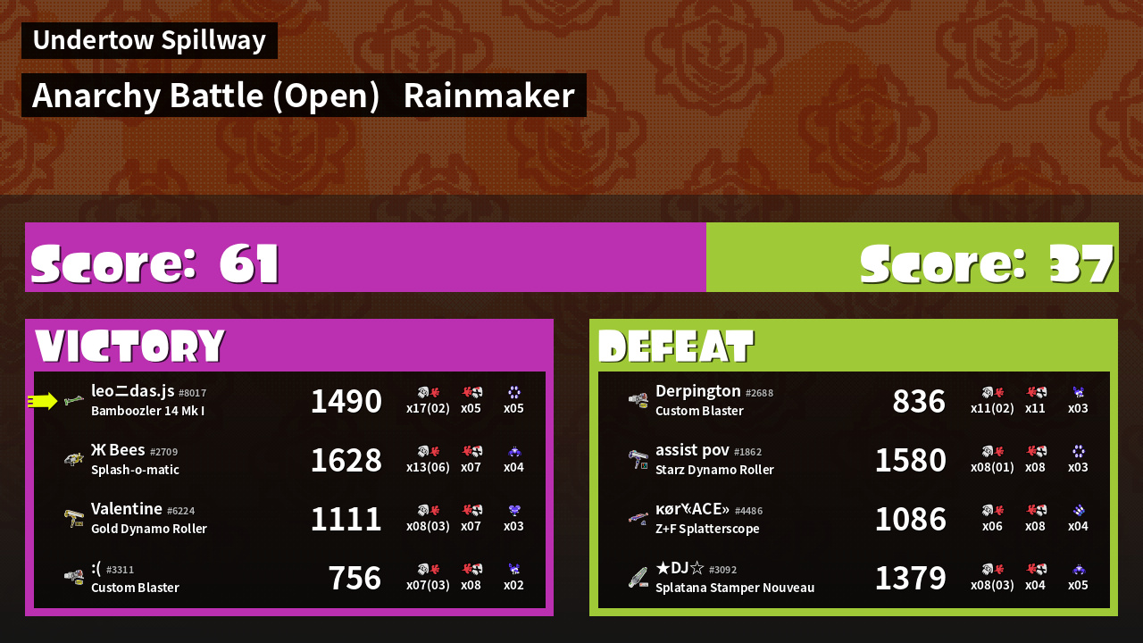 | Mode | Rainmaker - Anarchy Battle (Open) | ||