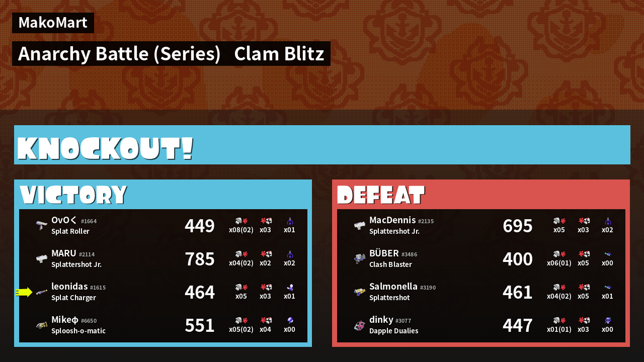 | Mode | Clam Blitz - Anarchy Battle (Series) | ||