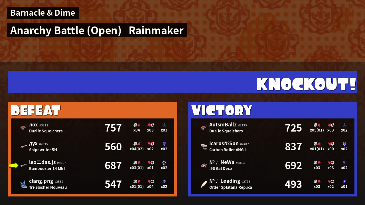 | Mode | Rainmaker - Anarchy Battle (Open) | ||