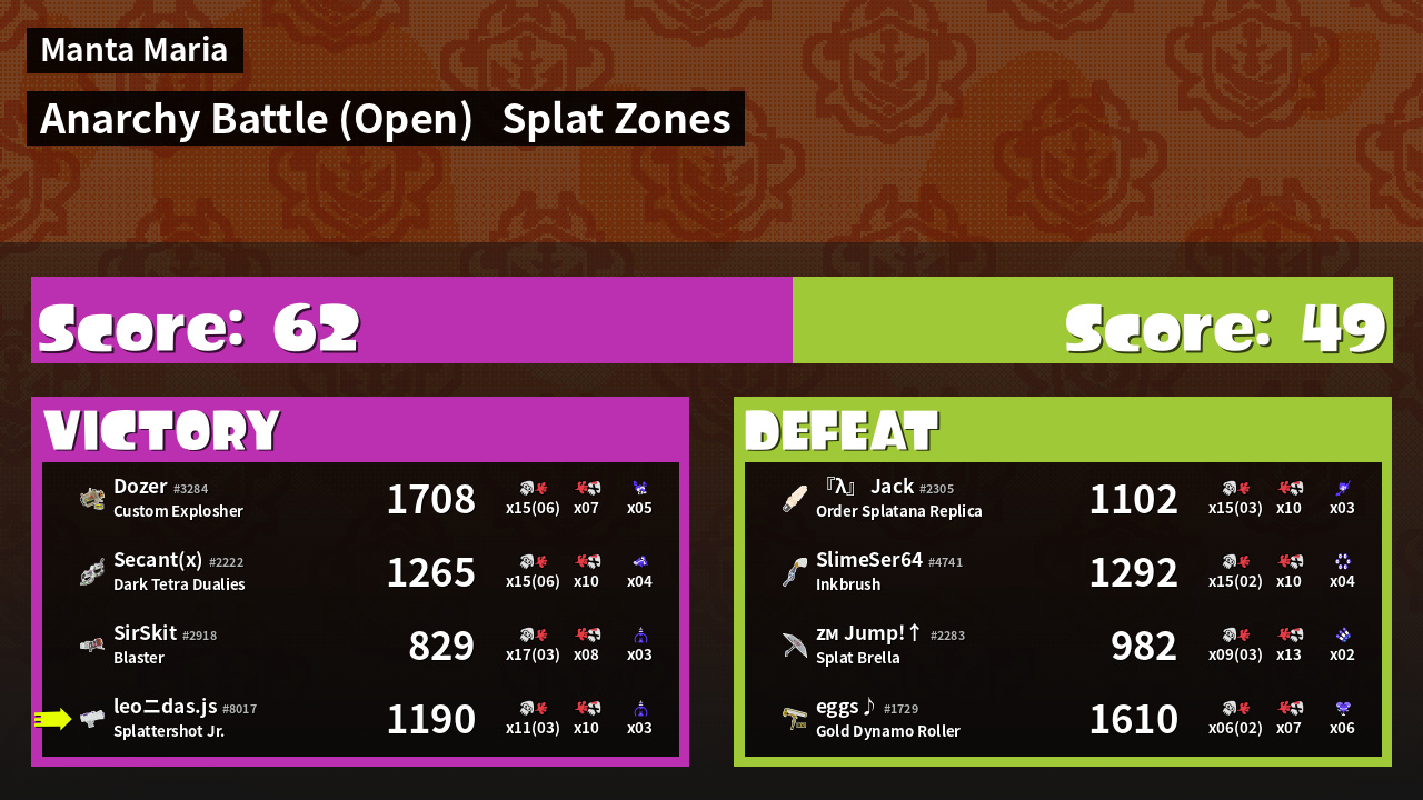 | Mode | Splat Zones - Anarchy Battle (Open) | ||