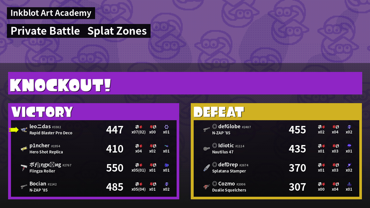 | Medals | #1 Overall Splatter #1 Splat Zone Inker #1 Splat Zone Guard | ||