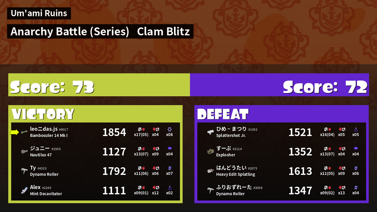 | Mode | Clam Blitz - Anarchy Battle (Series) | ||