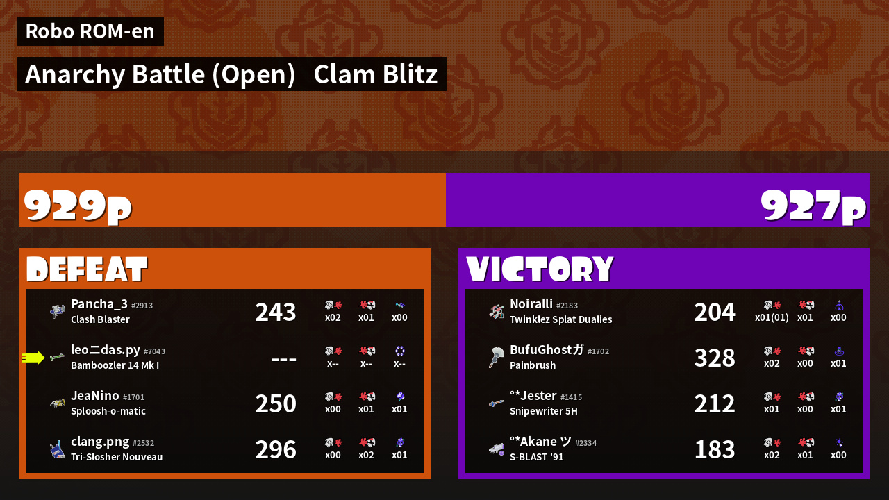| Mode | Clam Blitz - Anarchy Battle (Open) | ||