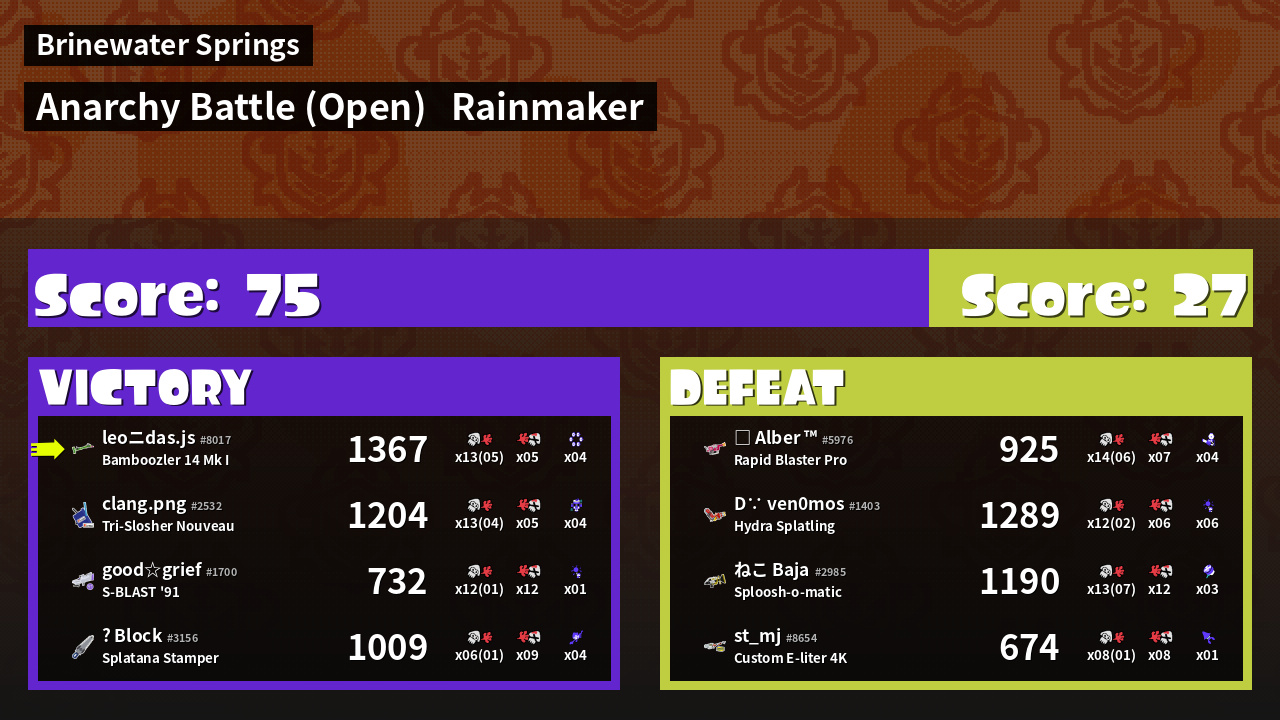 | Medals | #1 Overall Splatter #1 Score Booster #1 Turf Inker | ||