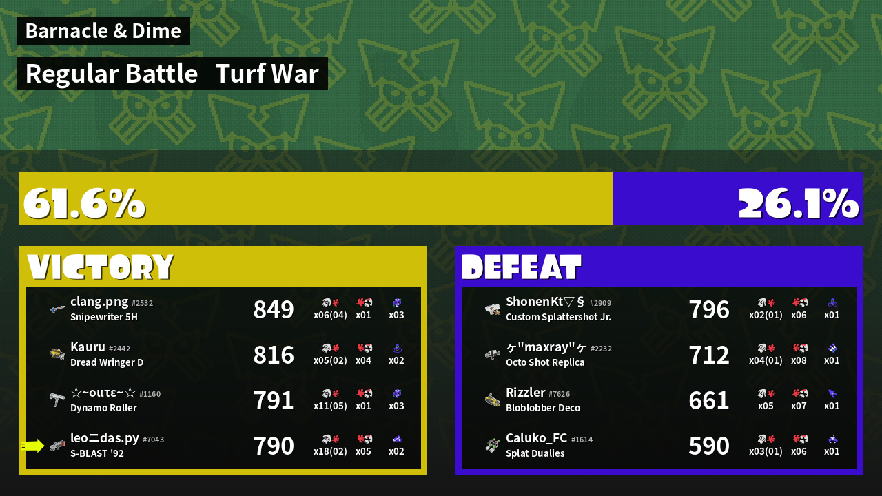 | Mode | Turf War - Regular Battle | ||