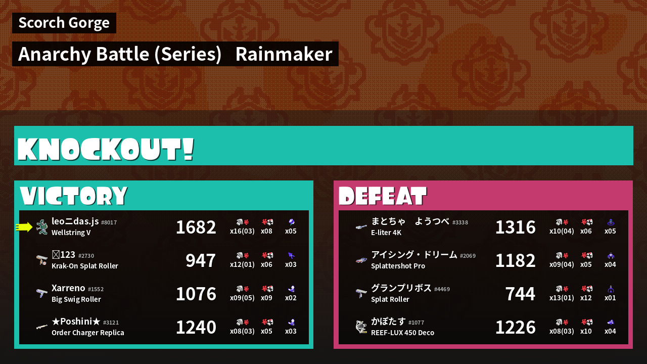 | Medals | #1 Overall Splatter #1 Turf Inker #1 Enemy Splatter | ||