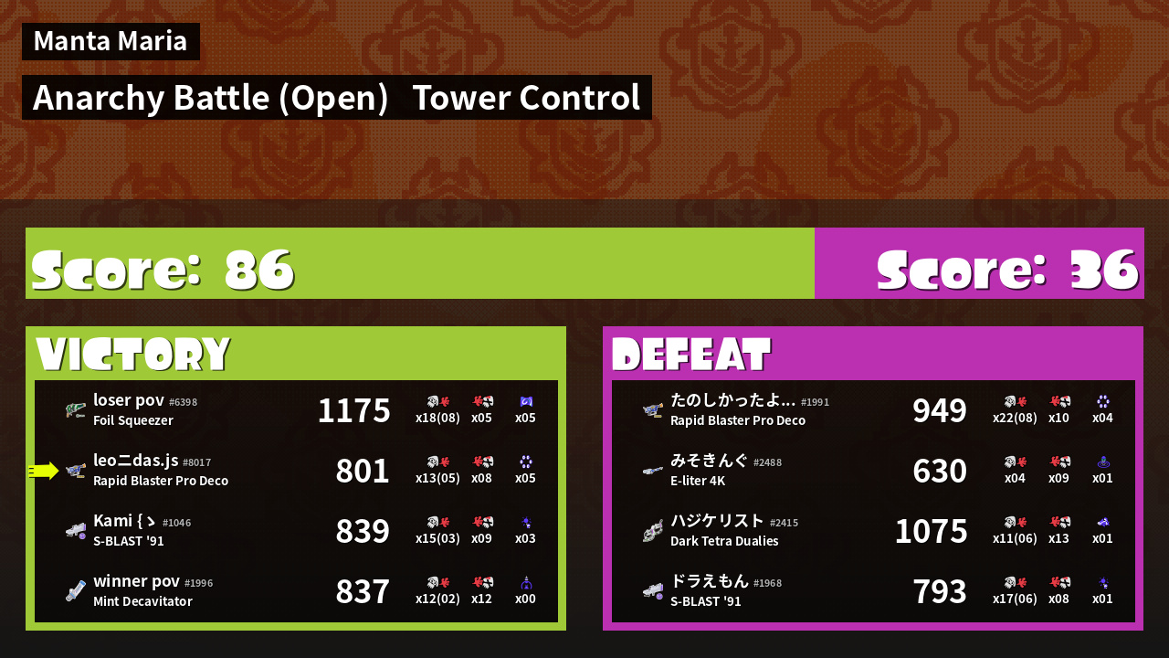 | Mode | Tower Control - Anarchy Battle (Open) | ||