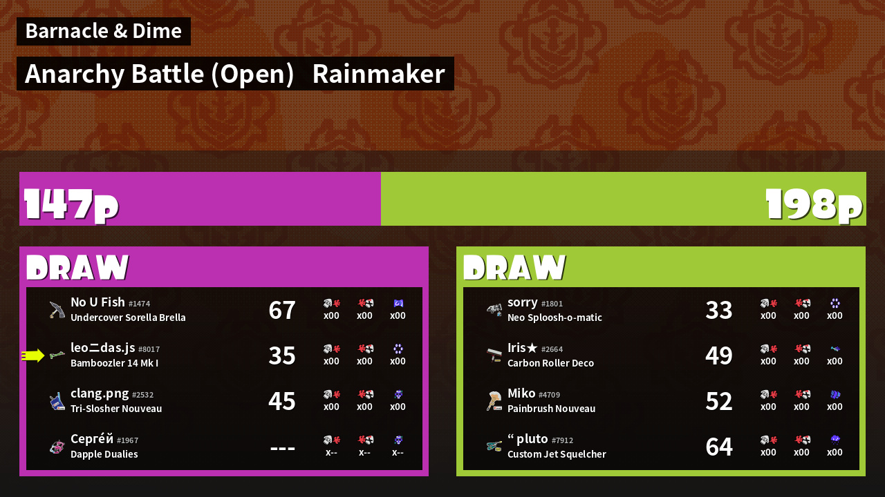 | Mode | Rainmaker - Anarchy Battle (Open) | ||