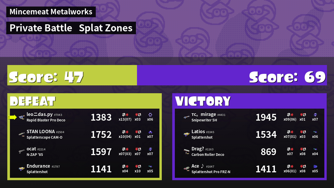 Kills / Deaths | 6 + 7 / 3 > Kill Ratio: 2.00 | ||