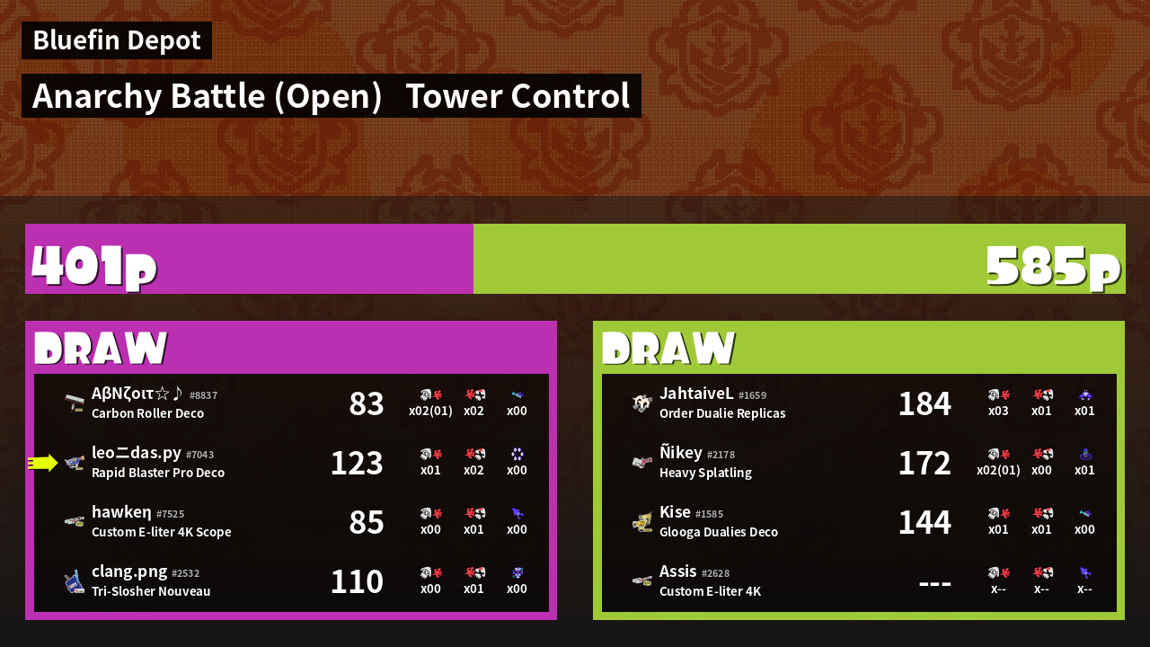 | Mode |    Tower Control -   Anarchy Battle (Open) | ||