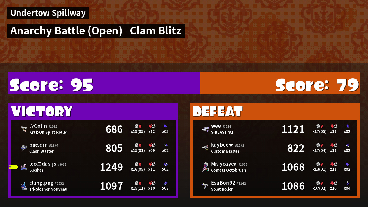 | Mode | Clam Blitz - Anarchy Battle (Open) | ||