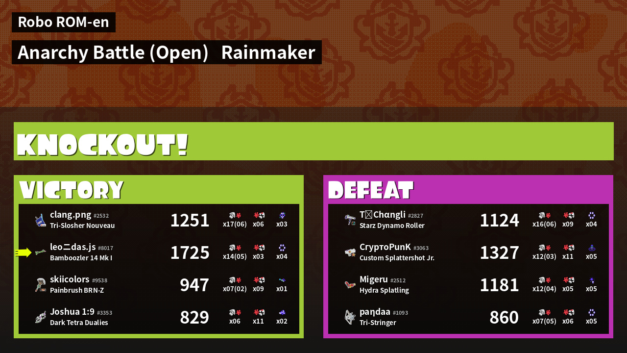 | Mode | Rainmaker - Anarchy Battle (Open) | ||