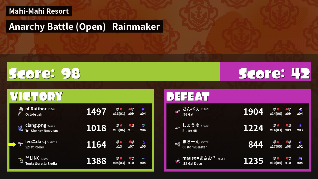 | Mode | Rainmaker - Anarchy Battle (Open) | ||