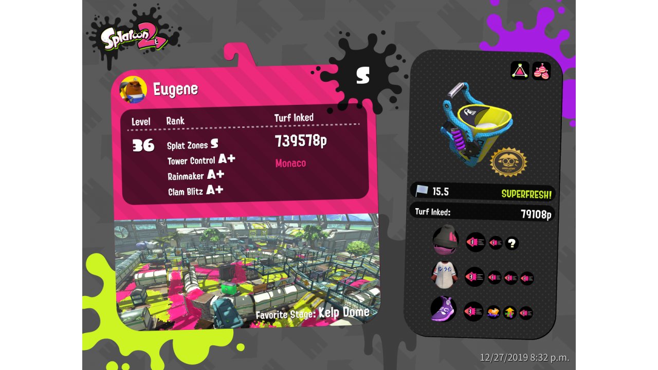 | Name | Weapon | Level | Rank | Inked | k+a/sp | k/d |