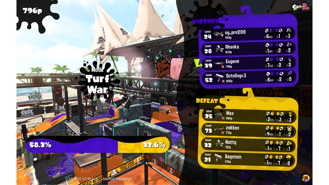 | Mode | Turf War - Regular Battle | ||||||||||||||||||||||||||||||||||||||||