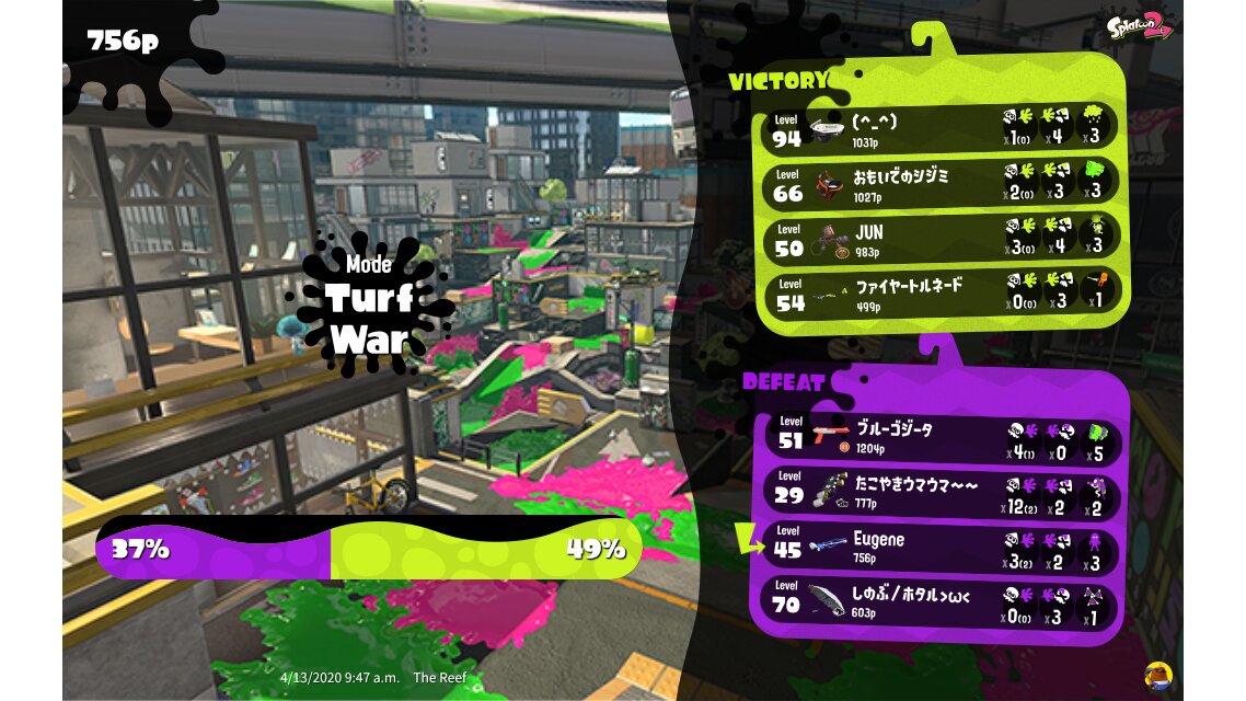 | Mode | Turf War - Regular Battle | |||||||||||||||||||||||||||||||||||||||||||