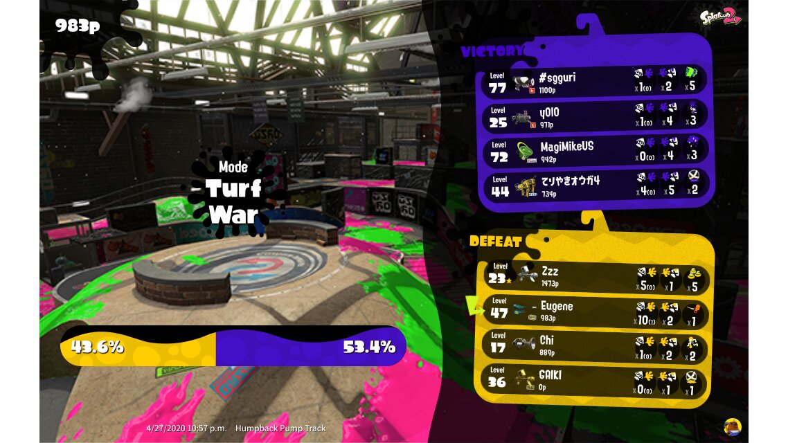 | Mode | Turf War - Regular Battle | |||||||||||||||||||||||||||||||