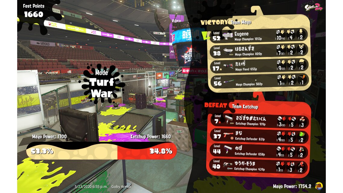 | Their team's splatfest power | 1,660 | ||||||||||||||||||||||||||||