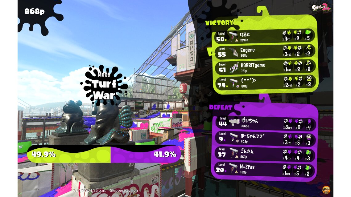 | Mode | Turf War - Regular Battle | |||||||||||||||||||||||||||||||||||||