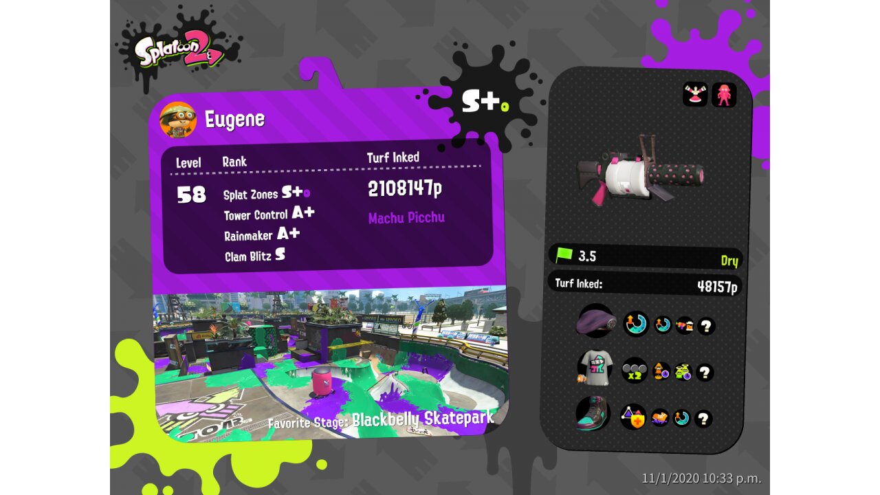 | Weapon | .96 Gal ( Sprinkler, Ink Armor) | |||||||||||||||||||||||||||||||||||||