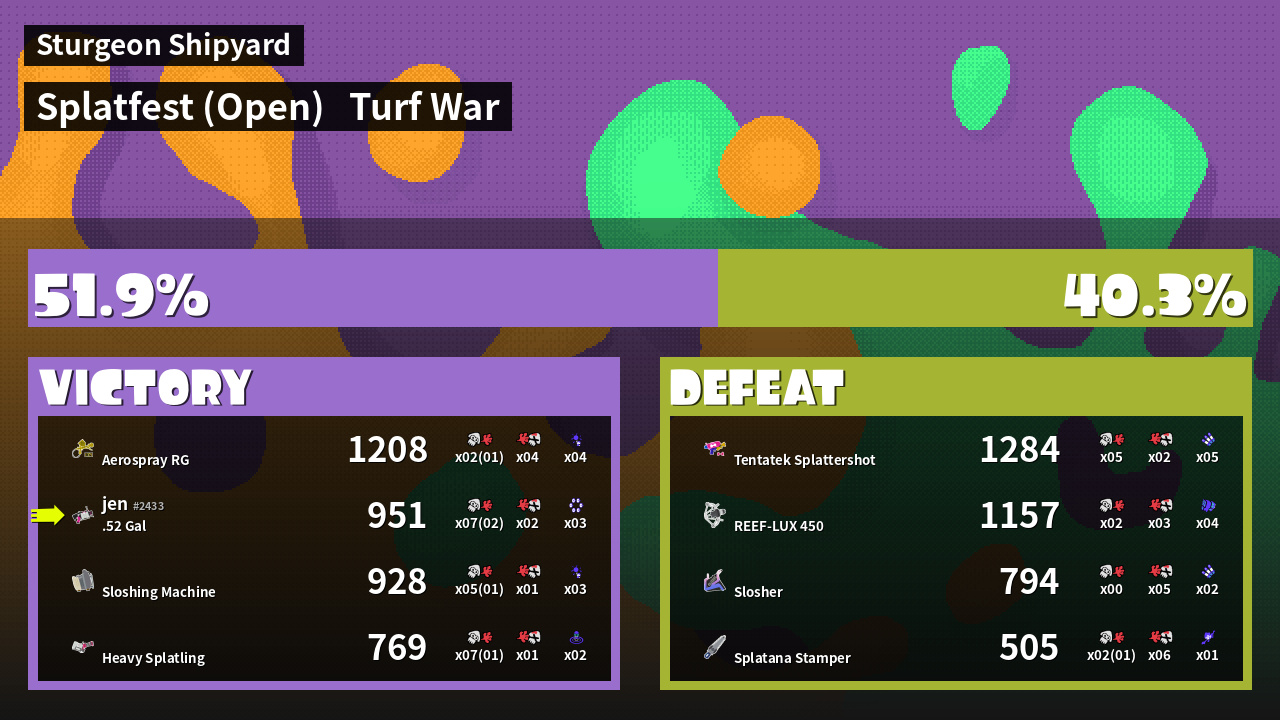 | Medals | #1 Overall Splatter #1 Popular Target #1 Splat Assister | ||
