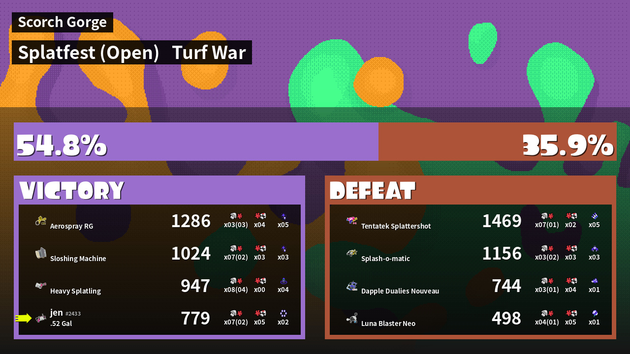 | Medals | #1 Enemy Splatter #2 Overall Splatter | ||