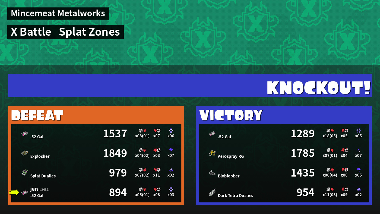 | Medals | #1 Splat Zone Guard #1 Splat Zone Hero #1 Damage Taker | ||