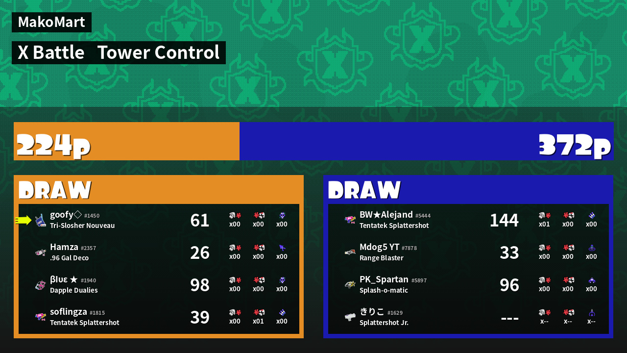 | Weapon | Tri-Slosher Nouveau ( Fizzy Bomb / Tacticooler) | ||