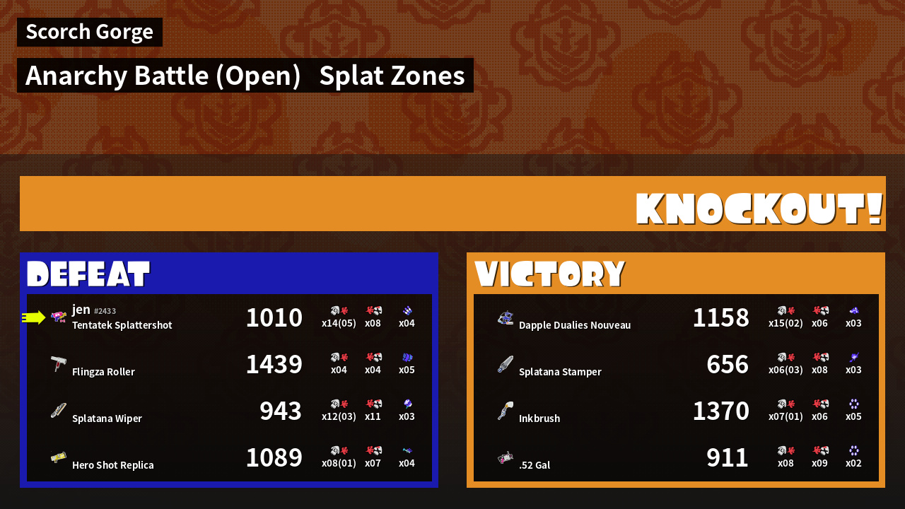 | Mode | Splat Zones - Anarchy Battle (Open) | ||