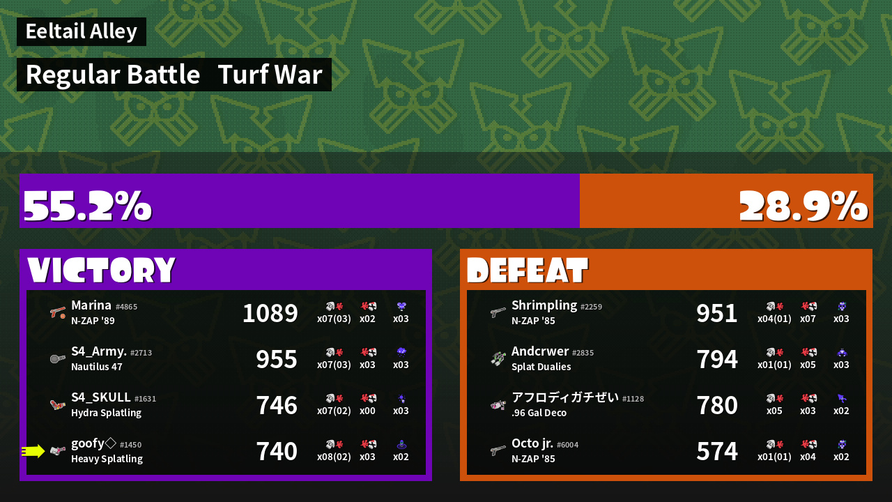 Kills / Deaths | 6 + 2 / 3 > Kill Ratio: 2.00 | ||