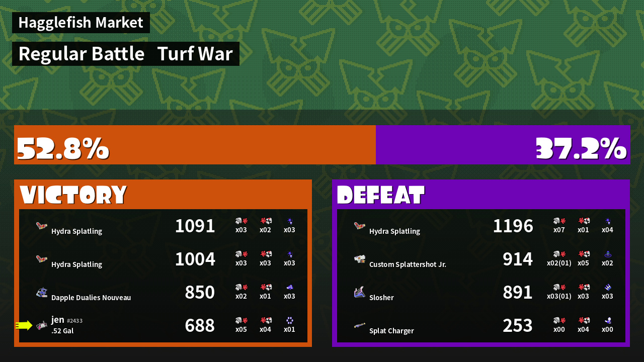| Medals | #1 Overall Splatter #1 Enemy-Base Inker #1 Enemy Splatter | ||