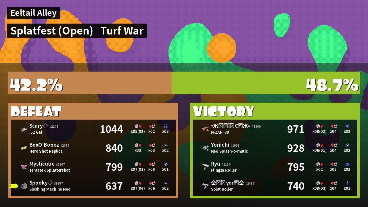 | Medals | #1 Overall Splatter #1 Enemy-Base Inker #1 Splat Assister | ||