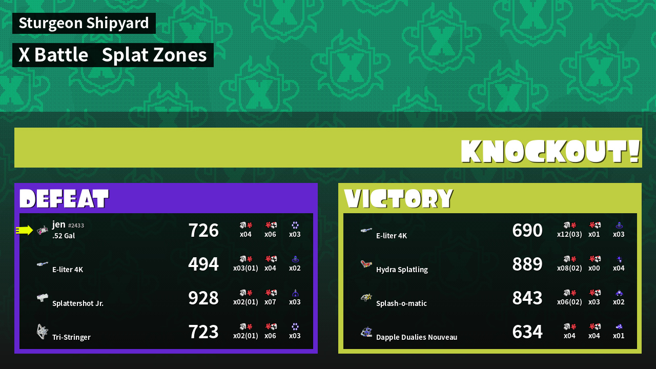 | Name | Weapon | X | Inked |  k |  d | KR | Sp | |