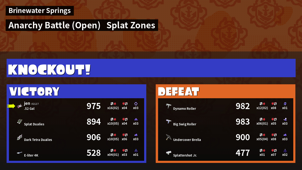 | Mode | Splat Zones - Anarchy Battle (Open) | ||