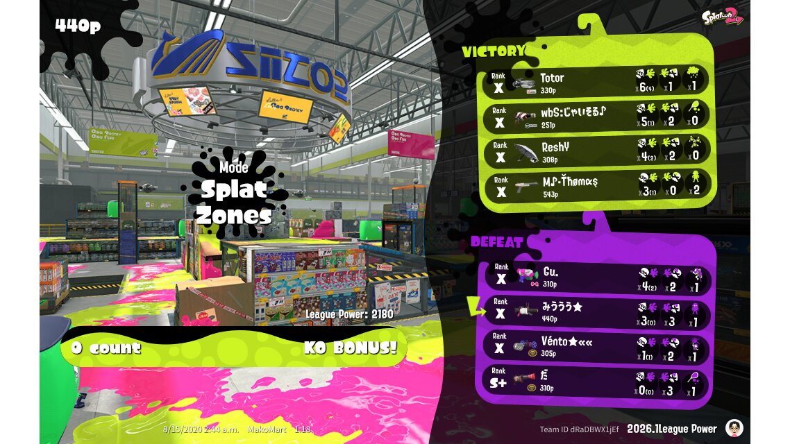 | Mode | Splat Zones - League Battle (Quad) | |||||||||||||||||||||||||||||||||||||