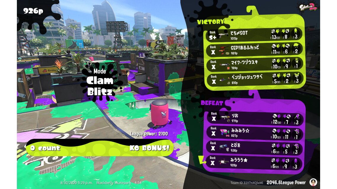 | Mode | Clam Blitz - League Battle (Twin) | ||||||||||||||||||||||||||||||||||||||||