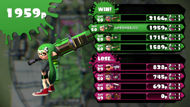 | Splattershot Jr. | 29 | 828 | 2 / 7 < | 0.29 | 22.2% | |