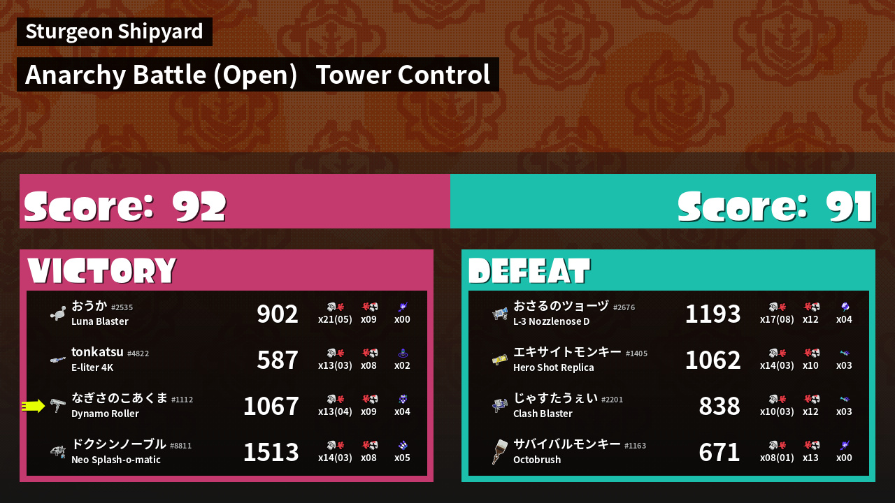 | Mode | Tower Control - Anarchy Battle (Open) | ||