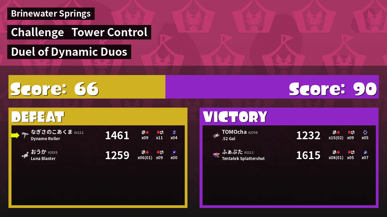 | Medals | #1 Overall Splatter #1 Score Booster Record-Score Setter | ||