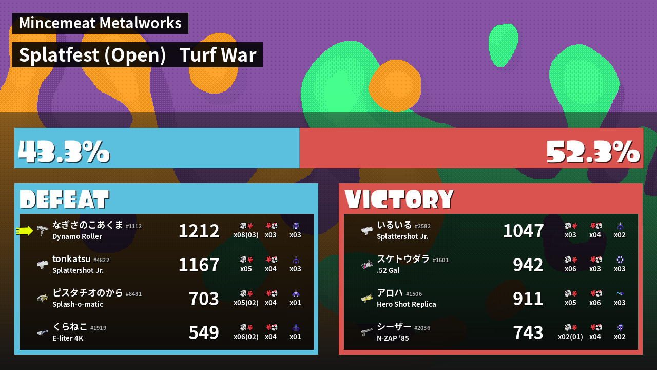 | Medals | #1 Overall Splatter #1 Turf Inker #1 Popular Target | ||