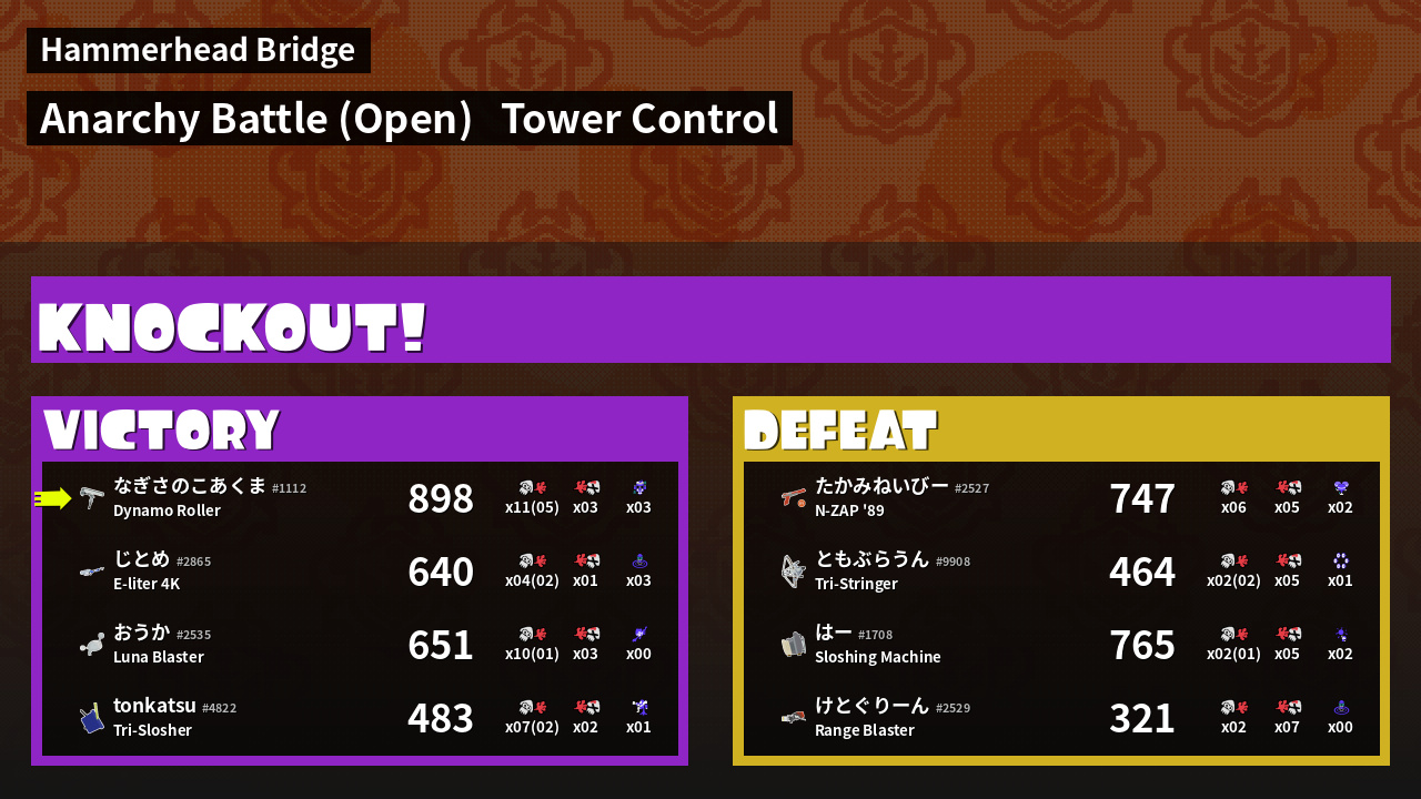 | Mode | Tower Control - Anarchy Battle (Open) | ||