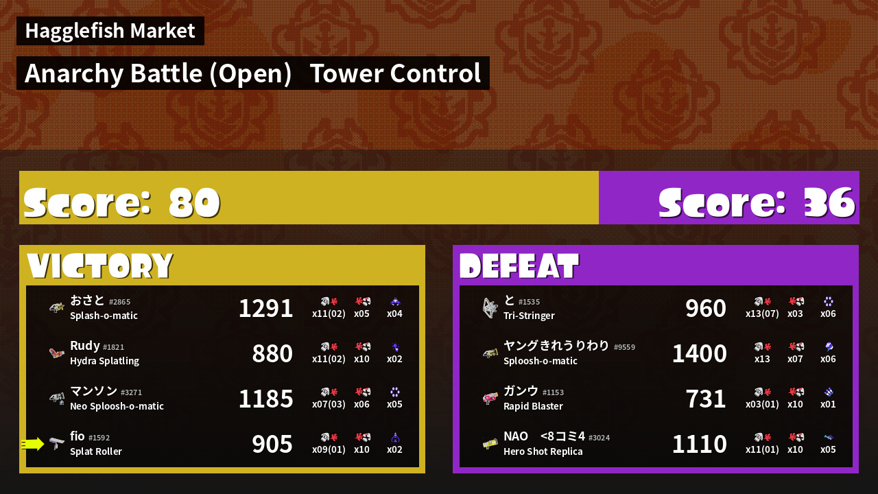 | Mode | Tower Control - Anarchy Battle (Open) | ||
