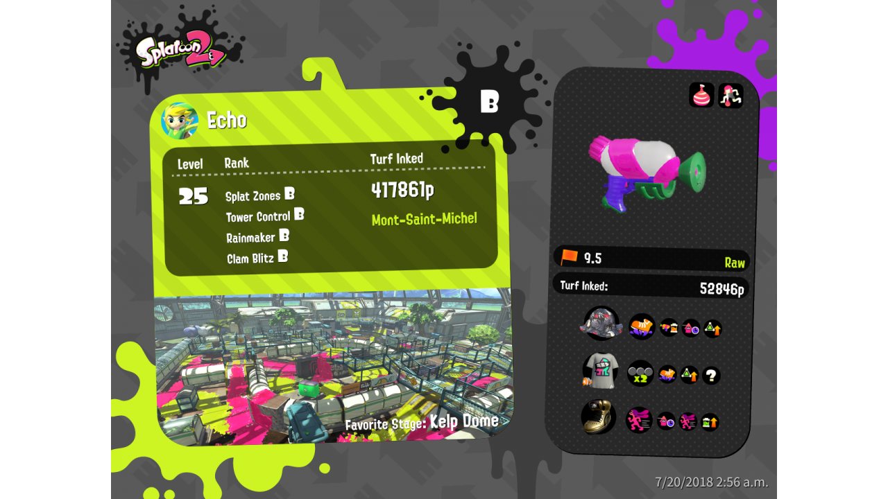 | Weapon | Splattershot ( Burst Bomb, Splashdown) | |||||||||||||||||||||||||||||||||||||