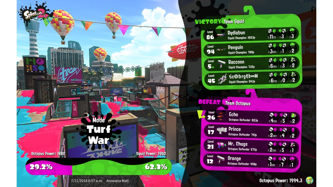 | Splatfest Power | 1,994.3 | |||||||||||||||||||||||||||||||||||||